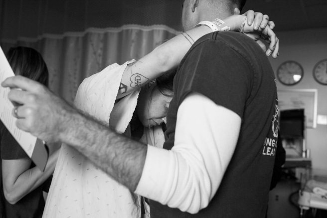 Around 3:00pm, I was sitting on the bed in a relaxed position and different friends and family members were physically supporting me because I was so tired. I didn’t want to move from that spot! I think I sat there for an hour! My contractions at that point were very intense and coming about every 45 seconds. My doctor came in around 4:00pm and was watching Ford on the monitor during one of my contractions; she stated that I needed to get up and move into a different position. As soon as I stood up, I felt like everything happened really fast.