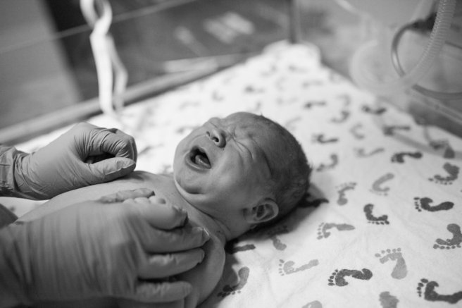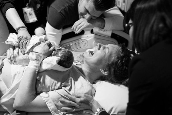 Between 5:00pm and 5:10pm, I changed positions a few times. I screamed a lot. I had a few contractions, and then it was go time. My doctor said I was 10cm dilated. I COULD FINALLY PUSH! I was lying on my side when she told me this and I started pushing right then. I pushed a few times in that position but I wasn’t making very much progress. I then changed positions to lying on my back with my feet up in stirrups. At 5:30pm, he was crowning.