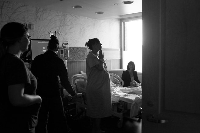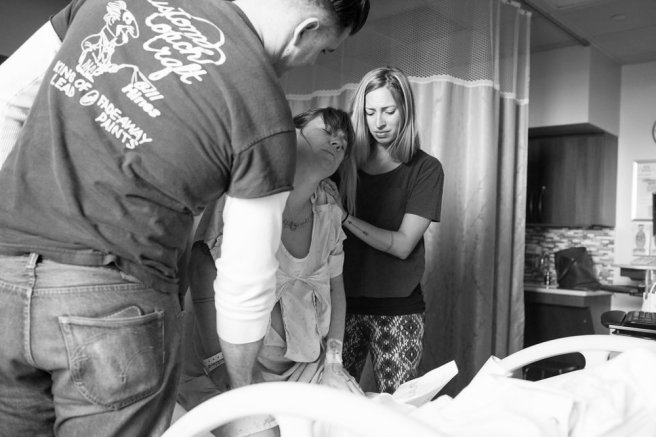 It was about this time that Mason called my doula, Jami, and asked that she meet us at the hospital. She arrived with a smile on her face and said, “It’s baby day.” I was very relieved to see her and know that Mason didn’t have to be my only coach from that point on. He had been doing such a good job coaching me through each contraction, but I knew he was tired and needed a break. I also wanted a break and told him so!